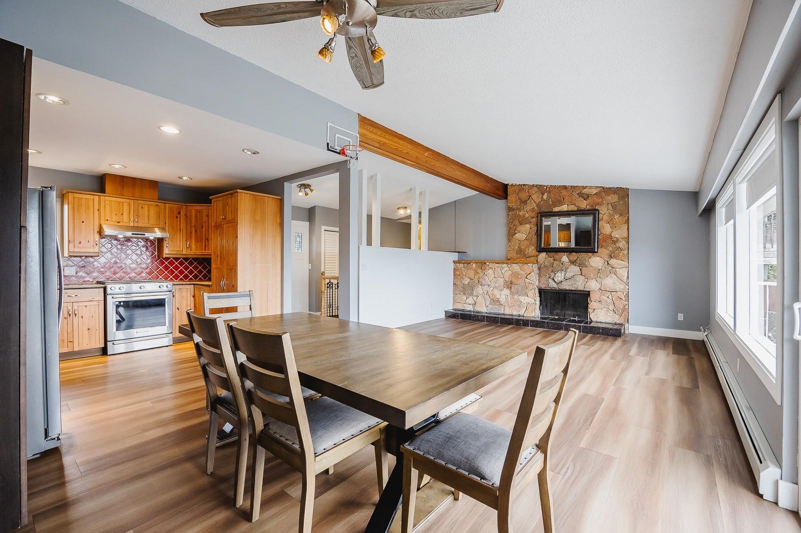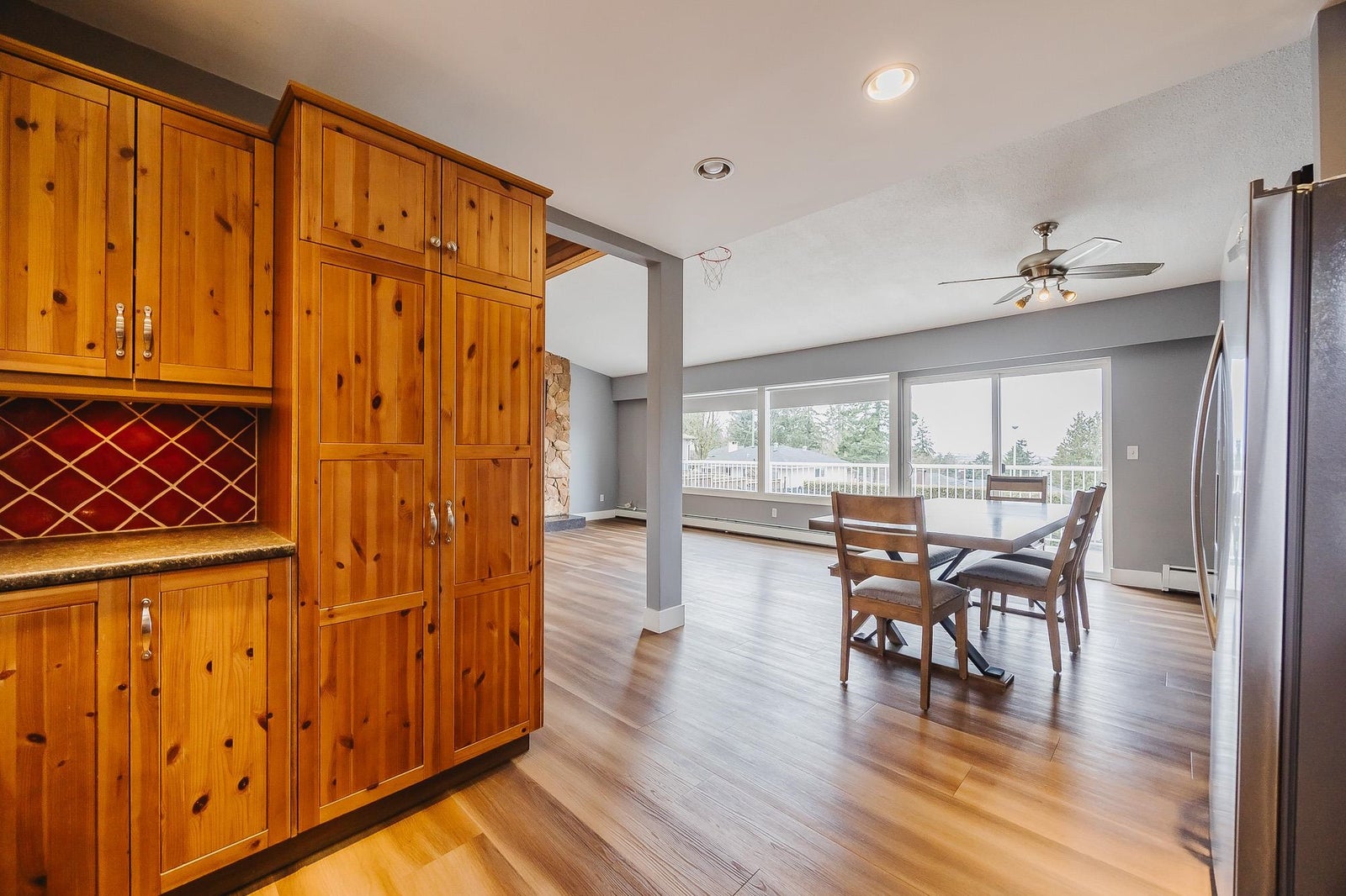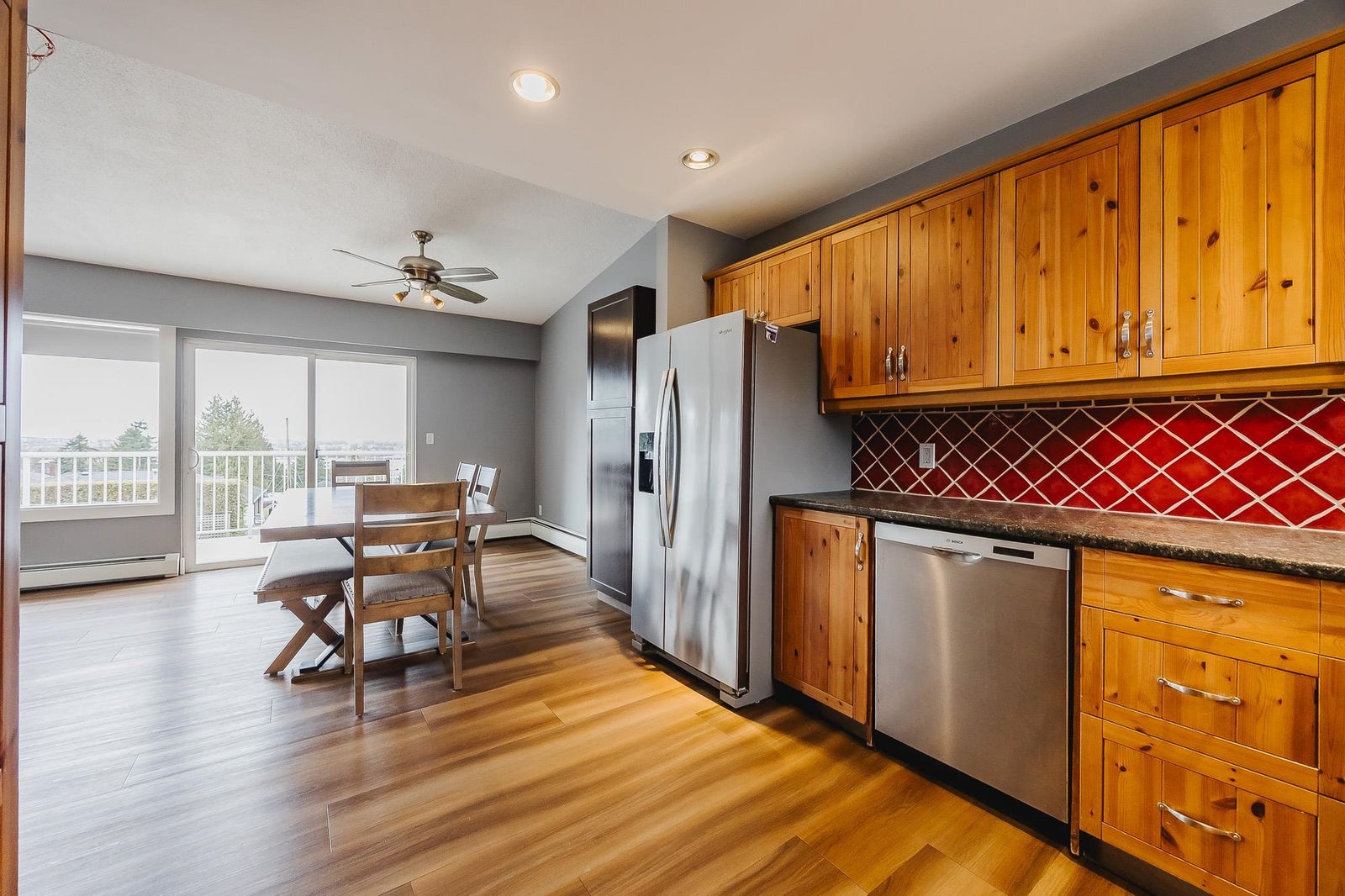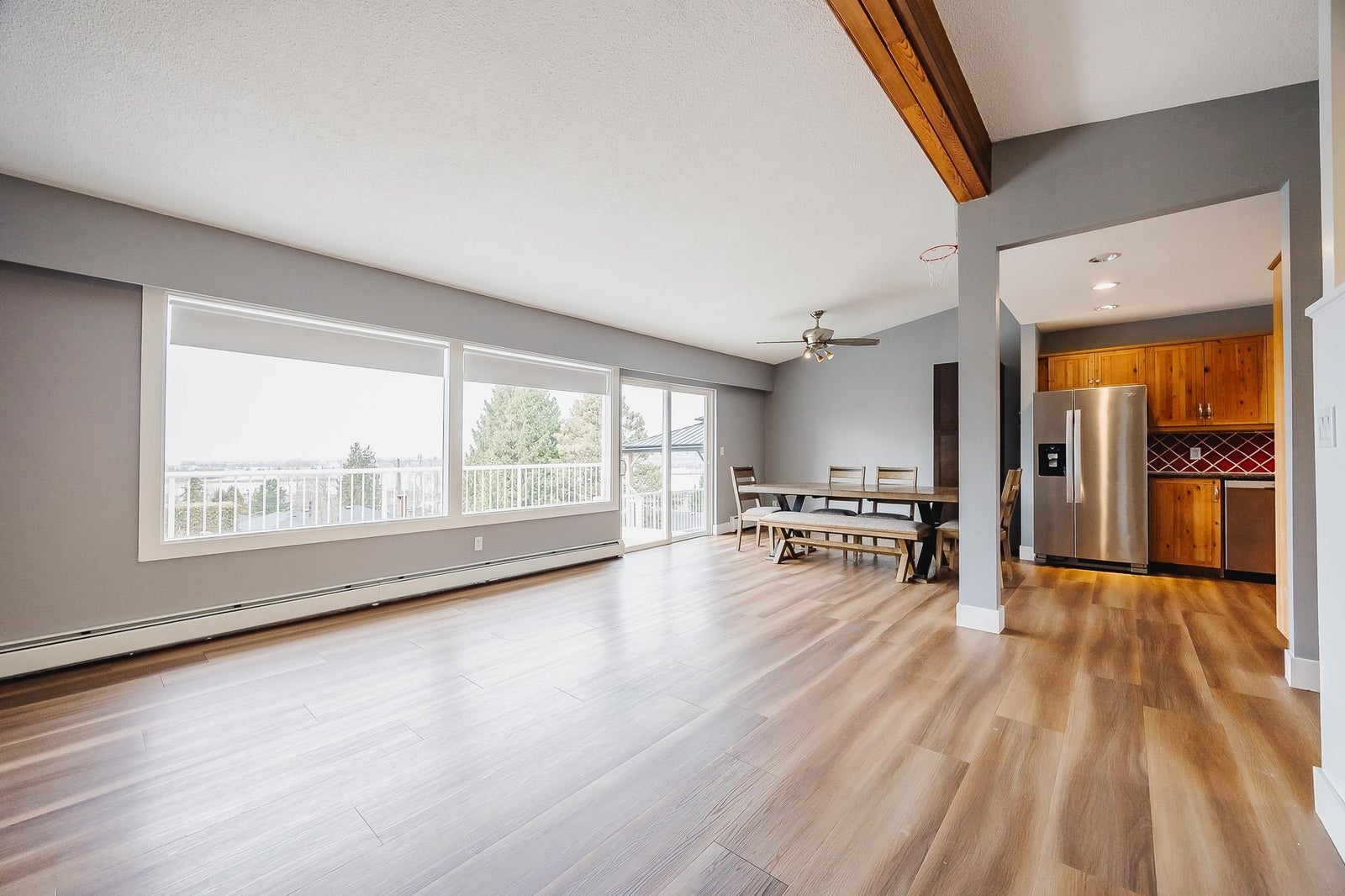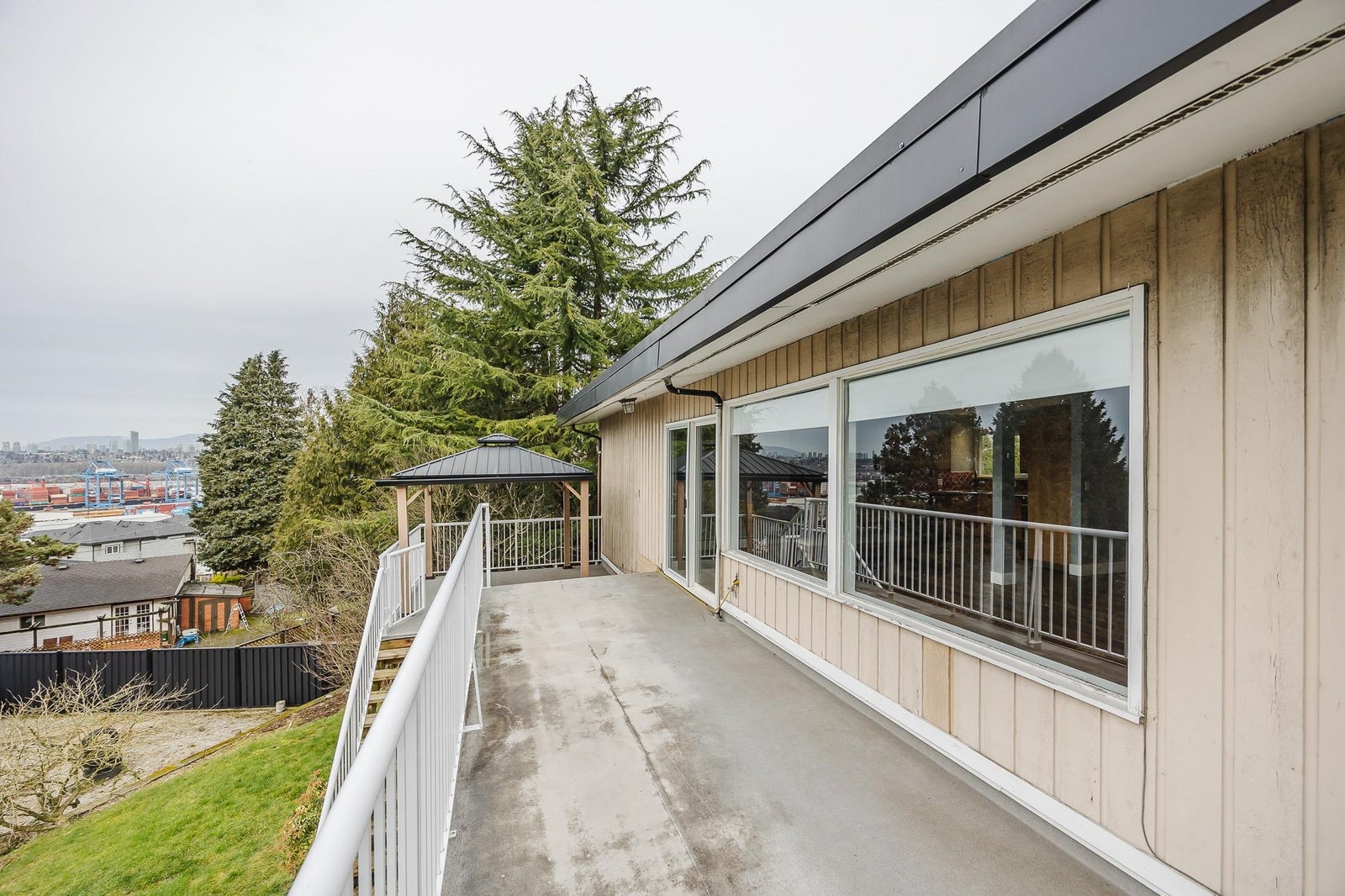 Welcome to this spacious 2,680 sq ft, 5 bedroom, 3 bathroom rancher with a walkout basement located in the highly sought after Royal Heights neighbourhood in a quiet cul-de-sac. The main floor features 3 bedrooms, 2 bathrooms & an open concept kitchen, living & dining room which leads to the large southwest facing tiered deck with breathtaking views of the river, city & mountains. The basement offers a well-appointed 2 bedroom suite with a separate entrance, perfect for extended family or rental income. The property sits on a generous 8,820 sq ft lot and is just steps away from Royal Heights Park, 5 minute walk to Royal Heights Elementary and with quick access to Hwy 17, Alex Fraser and Pattullo Bridges. This home offers both convenience and tranquility in a quiet, family-friendly setting.