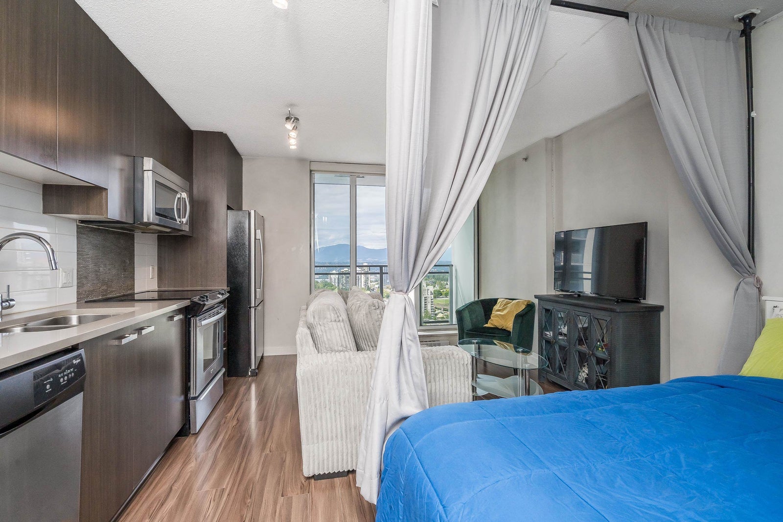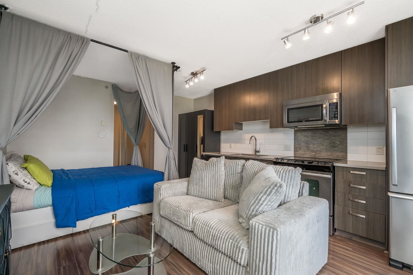 Welcome to Ultra in Surrey City Centre! This modern studio is the perfect turn-key investment or starter home. Featuring a sleek open-concept design with floor to ceiling windows, laminate flooring, and a well-appointed kitchen with quartz counters and stainless-steel appliances. Enjoy sweeping city and mountain views from your private balcony. Ultra offers fantastic amenities including a gym, social lounge, and meeting room. Located just steps to Surrey Central SkyTrain, SFU, KPU, shopping, dining, and the new UBC campus. Rentals allowed and one parking included, ideal for investors or first-time buyers looking for unbeatable value in the heart of Surrey.