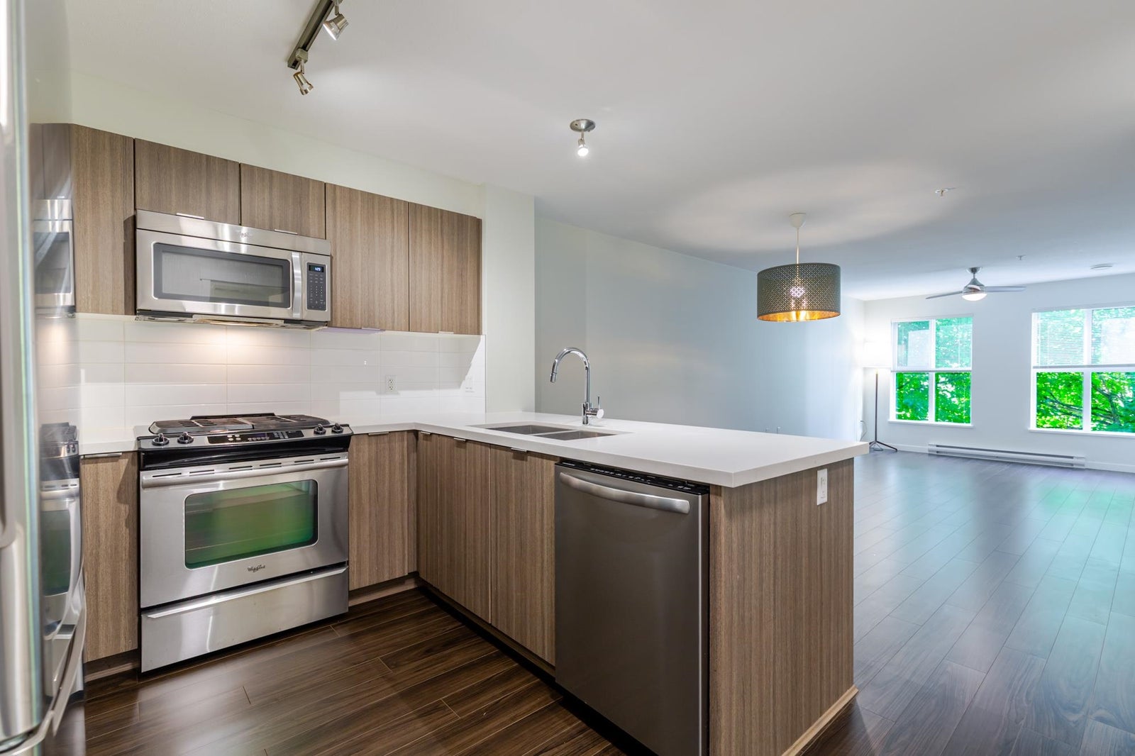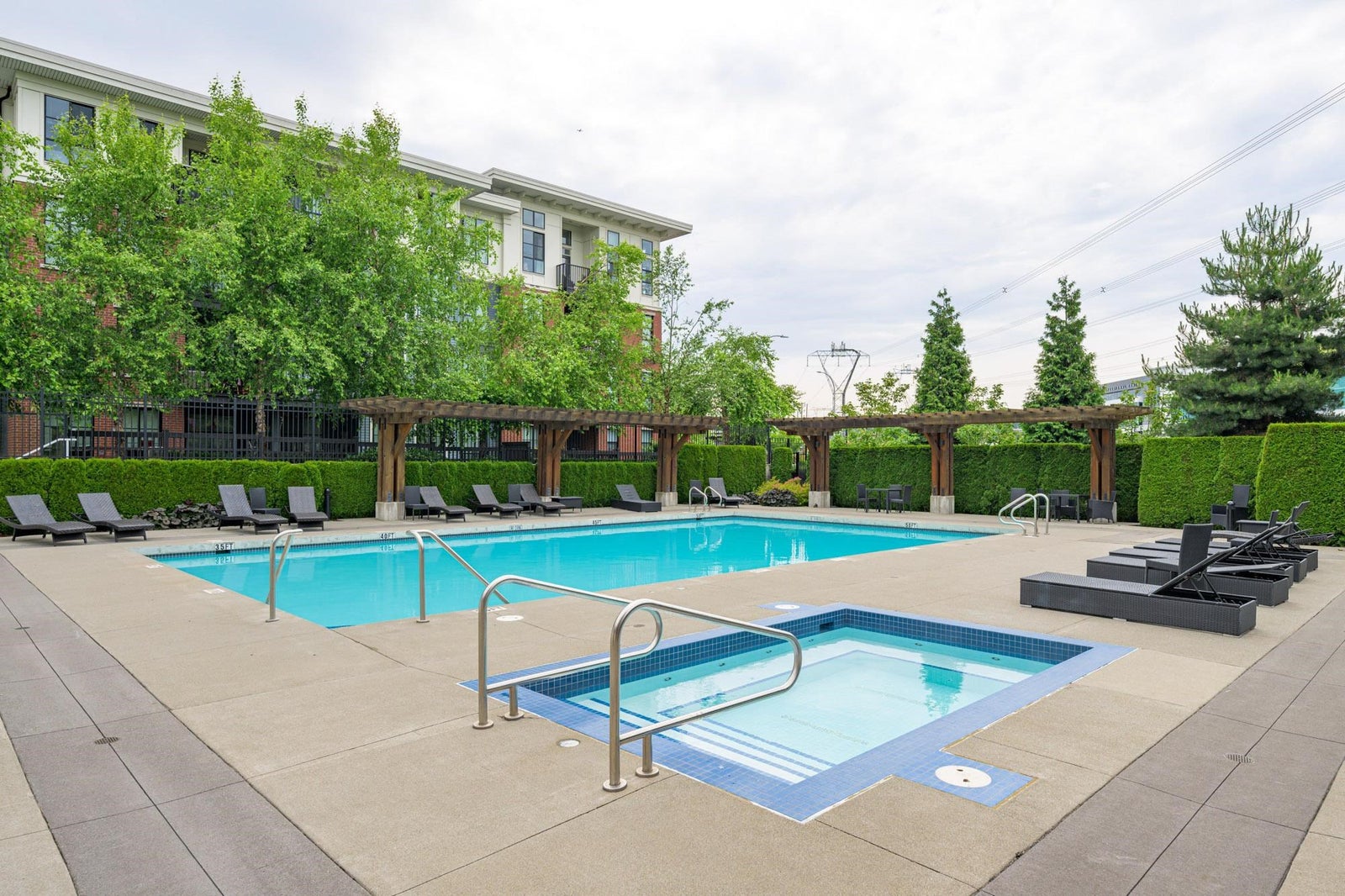Kingston House! This 864 sq.ft. 2 bed, 2 bath unit has just been freshened up with new paint throughout and new carpets in the bedrooms. Upon entry, the spacious kitchen features stainless steel appliances and a white quartz counter peninsula extending through to the open dining and living areas complete with a west facing covered sundeck. The treed outlook offers maximum privacy with no opposing neighbours looking in. As part of Harvard Gardens, residents enjoy resort style amenities including pool, hot tub, fitness centre, guest suites and more. Very easy access to Hwy 99 for commuters and close to shops and restaurants.