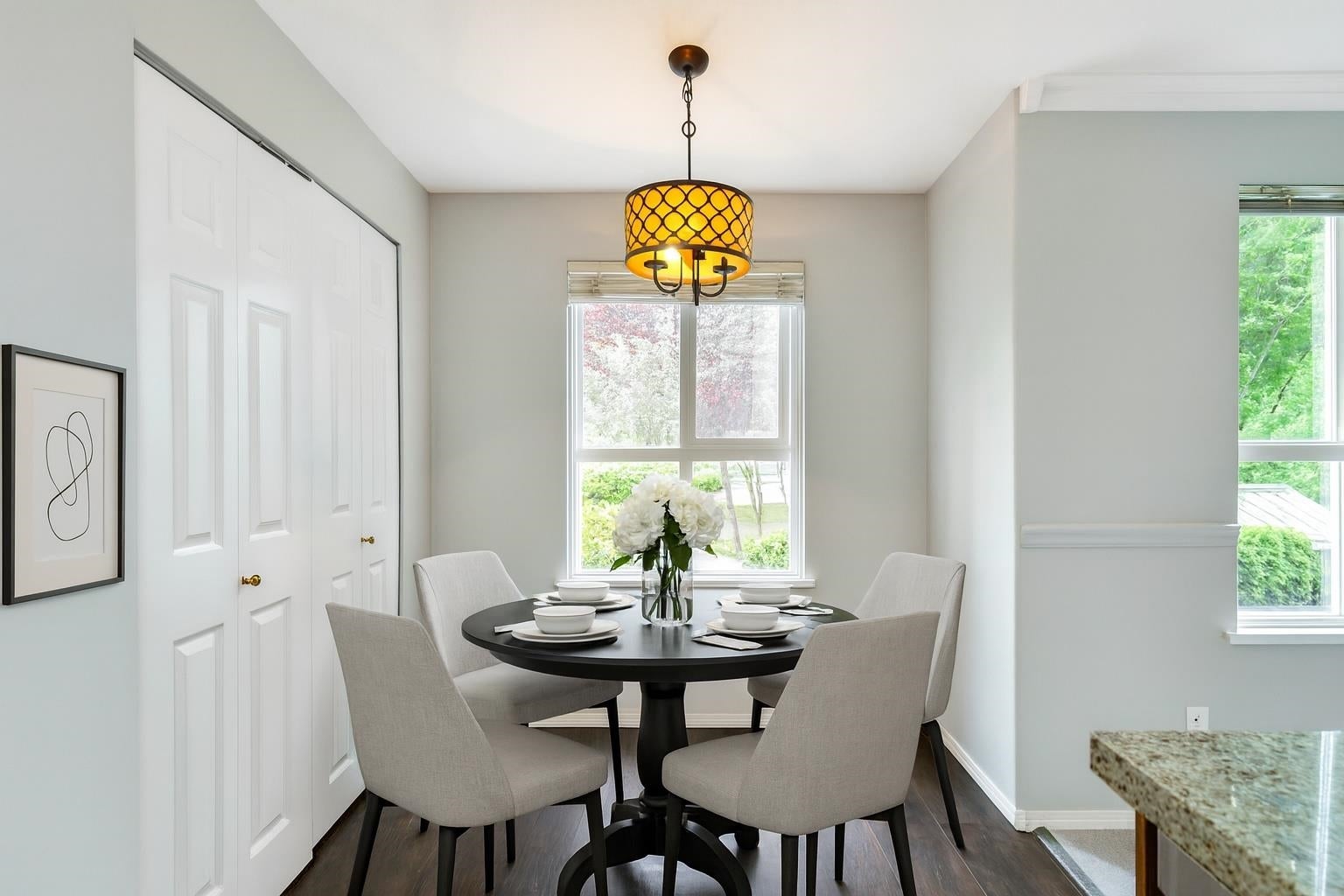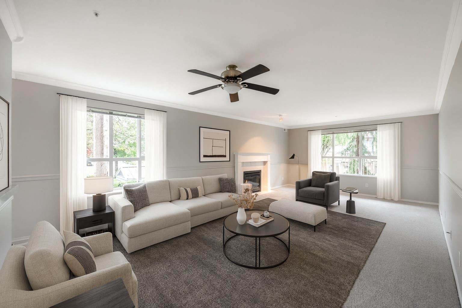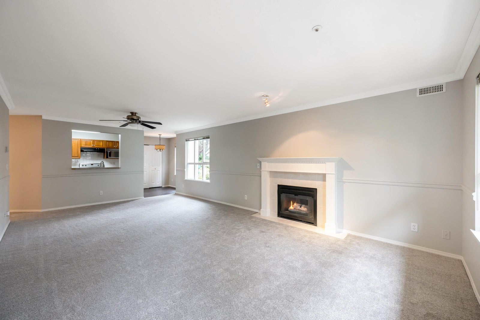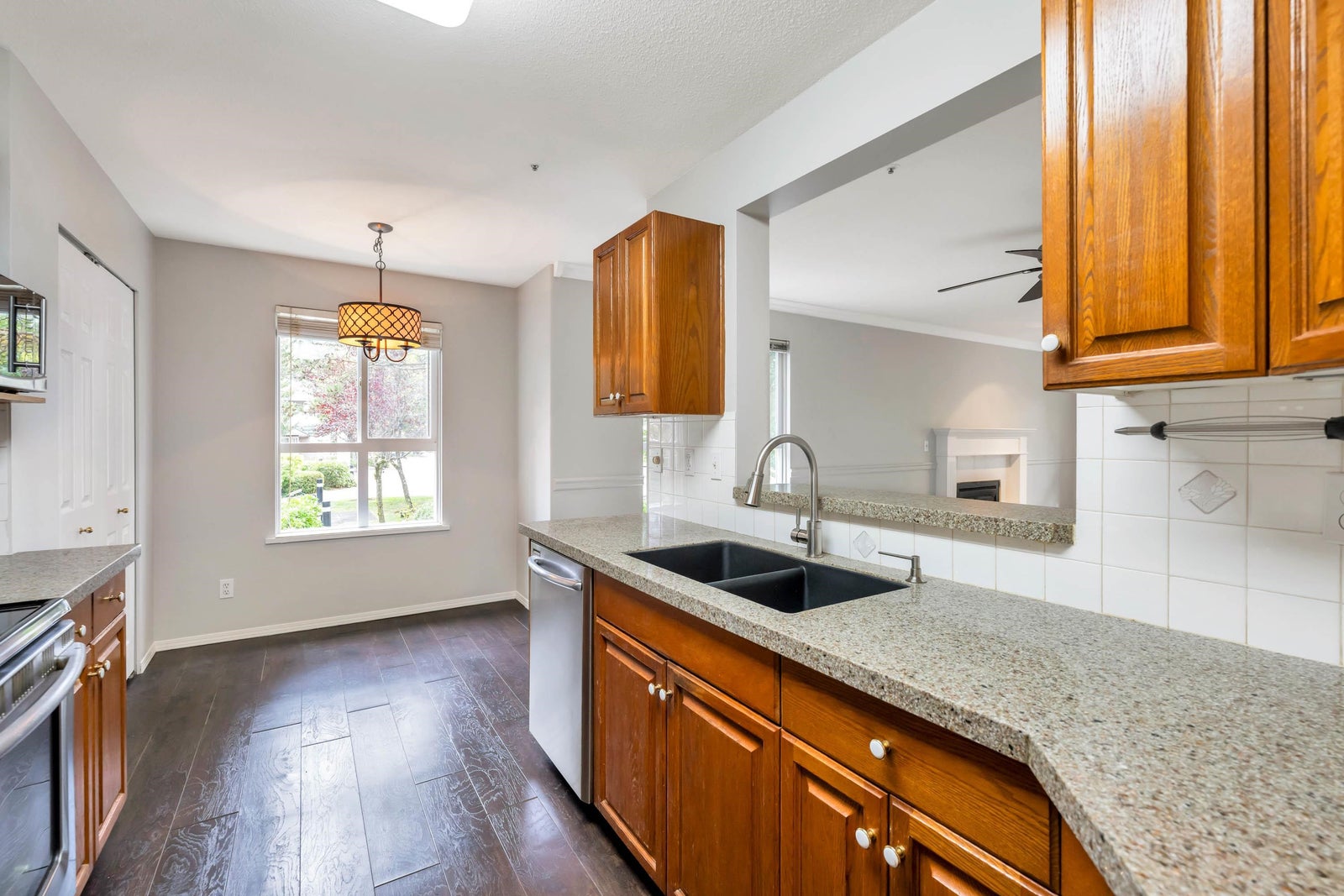 Very bright end unit with lots of large windows that's move in ready 2 beds, 2 full baths in well maintained CHELSEA GARDENS a 55+ community in MAYFAIR bldg where 2 pets (max 15" at shoulder allowed) . Freshly painted including ceiling and trims and new carpeting throughout. Kitchen boasts vinyl planking, stainless steel appliances, granite countertops and breakfast nook by east facing window overlooking gardens. Lvg room with cozy fireplace and crown moulding has sliders to the covered south facing wrap around deck great for container gardening and enjoying the sun. Both full baths have vinyl plank flooring, granite counter tops. CHELSEA has 3 guest suites, reflection ponds and outdoor pool, exercise room, woodworking shop, hot tub, library, English pub and rentable fireside room.