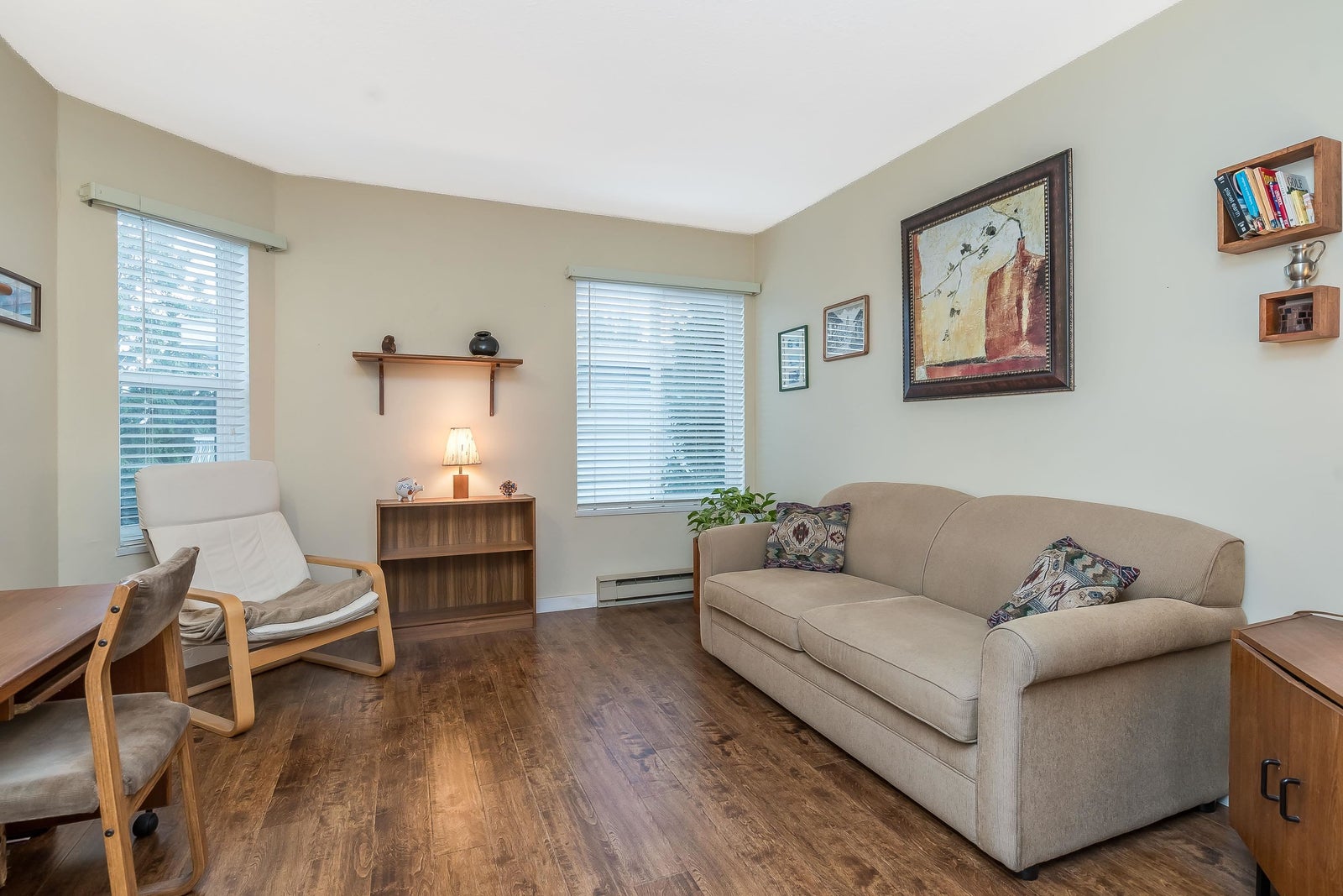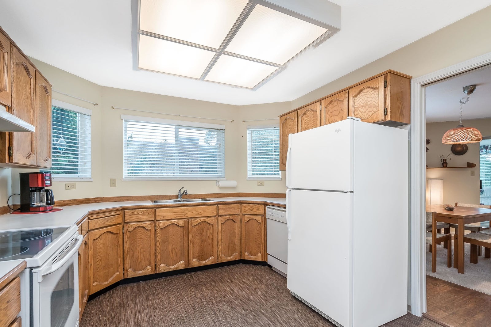 Welcome to Chatsworth Manor. Your downsize doesn’t have to feel like one. This bright and spacious 1,330 sqft, 55+ CORNER home feels more like a bungalow than a condo. The eat-in kitchen, with a window over the sink and generous counter space, has the comfort of a house. The spacious, open living and dining area features windows on two sides and leads to a southeast-facing enclosed sunroom for year-round enjoyment. With opposing bedrooms, double ensuites, and a large laundry/utility room, this welcoming home is just minutes to White Rock Beach, transit, Semiahmoo Mall, shops, restaurants, and easy access to Hwy 99.